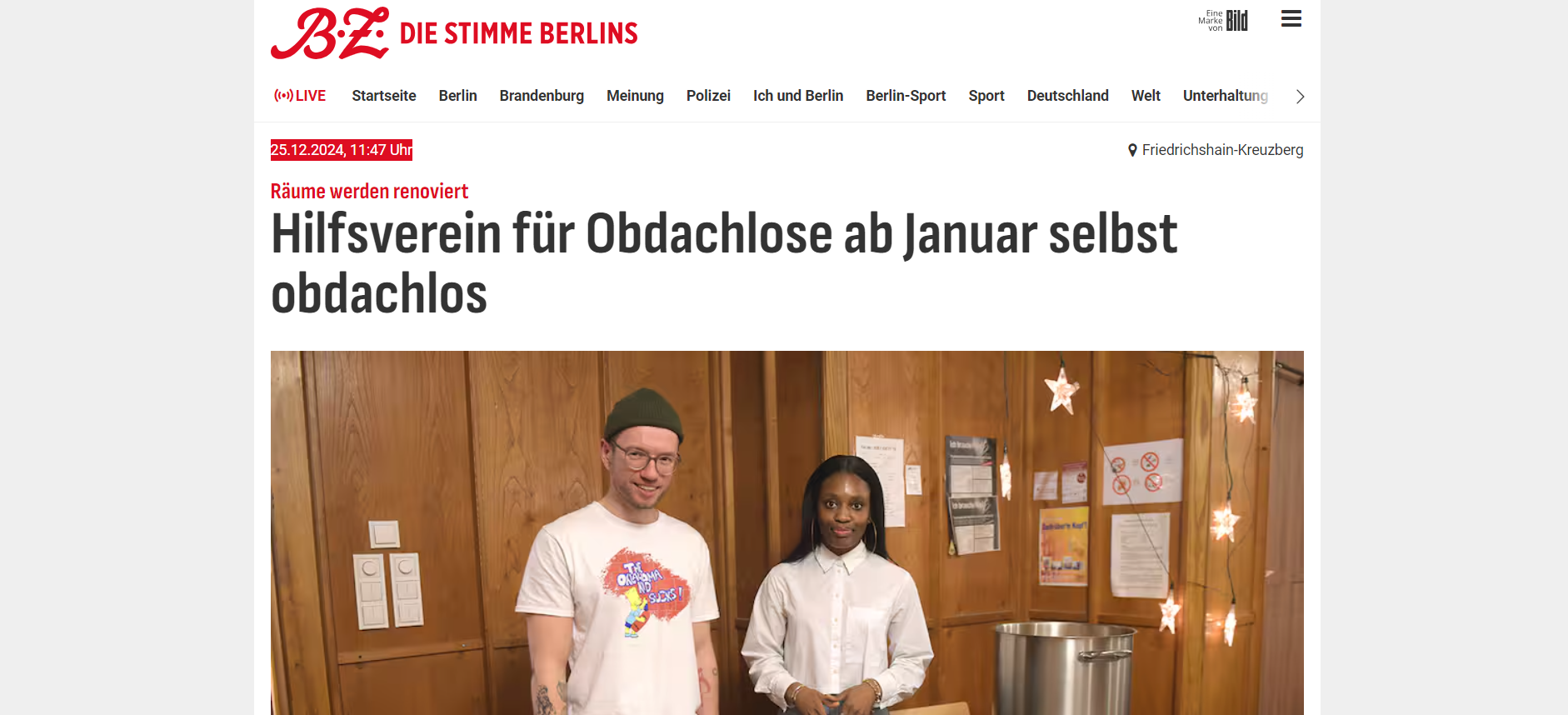 "Hilfsverein für Obdachlose ab Januar selbst obdachlos"